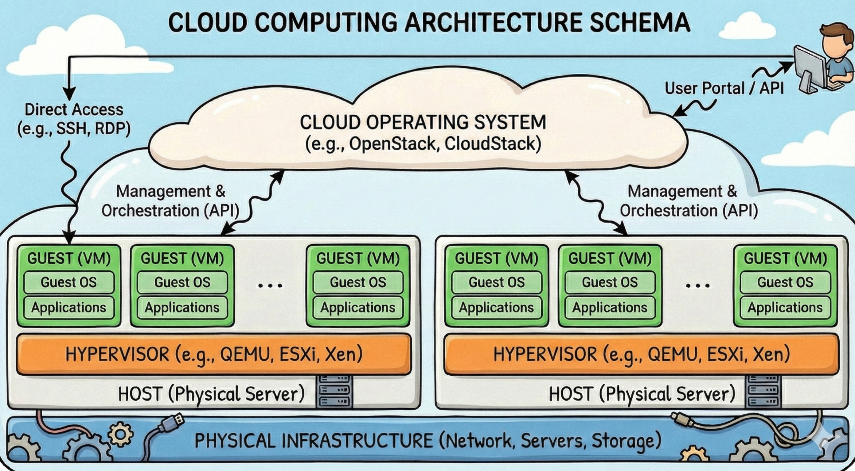 Resource Pooling: It hides the physical location of resources. You ask for “8GB of RAM,” and the Cloud OS finds it somewhere in the datacenter.
